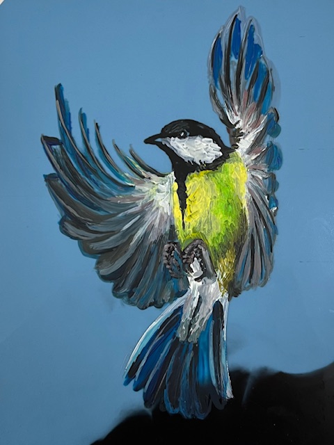 great tit 2 2025 acryl on Xray 20 x 25 cm