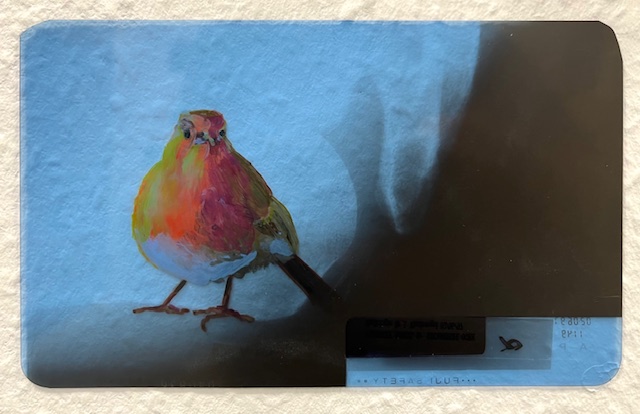 robin reverse 1 2025 acryl on Xray 11 x 17 cm