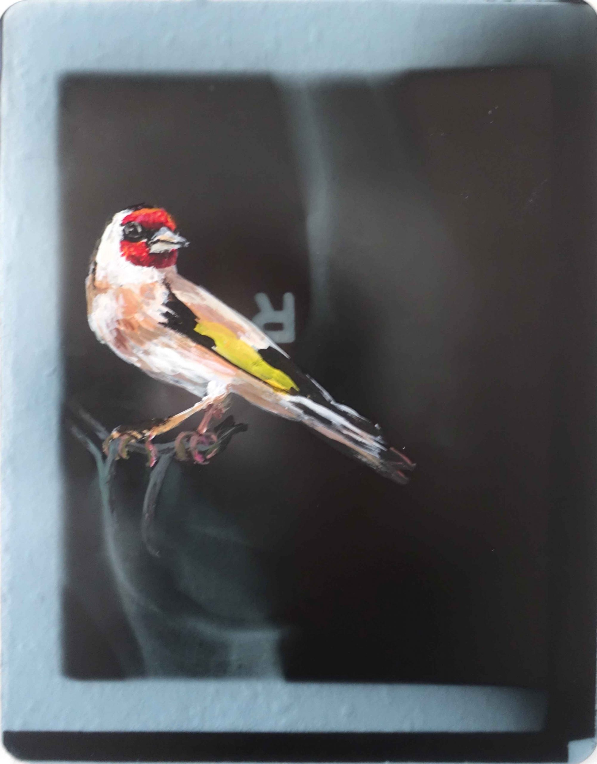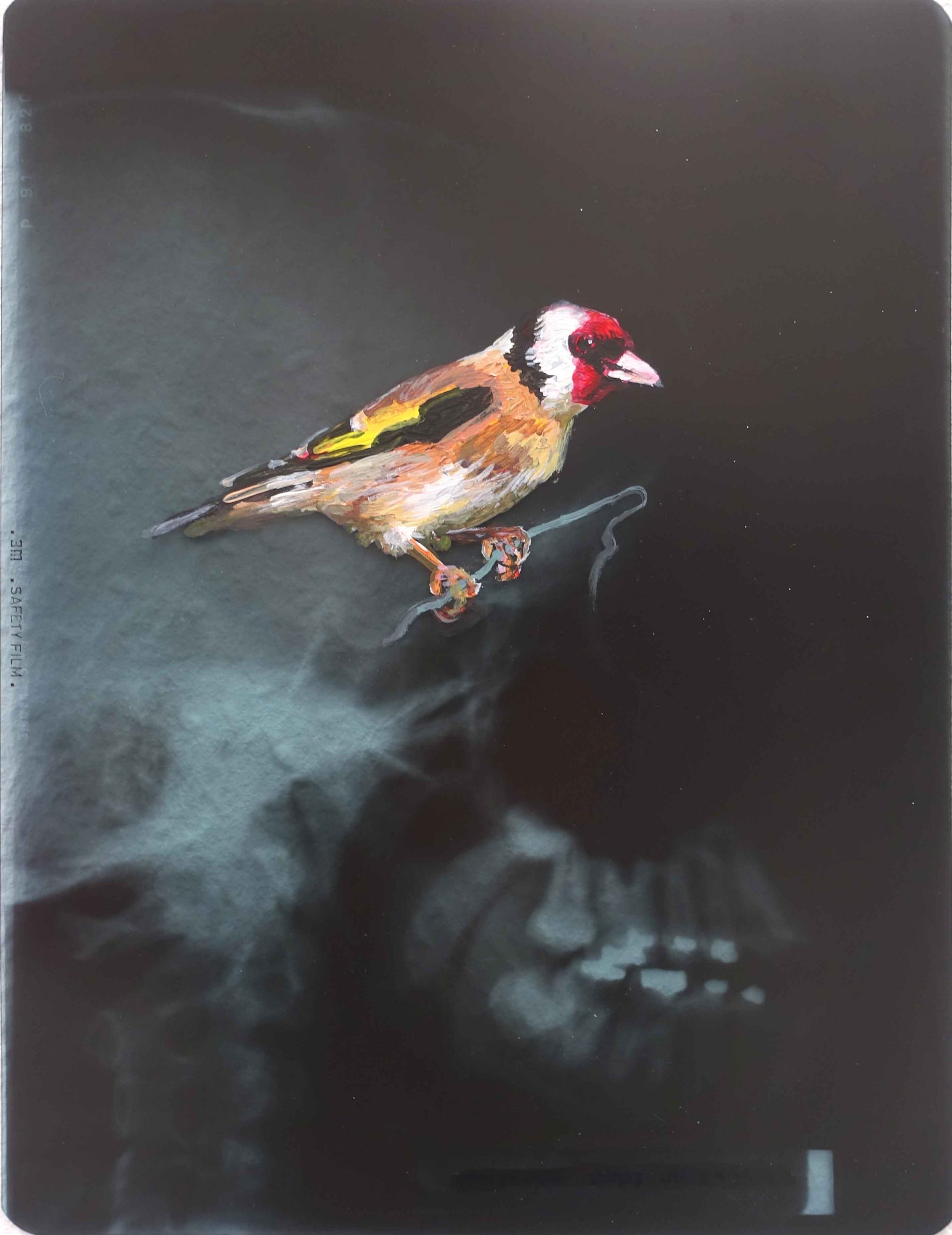 Stieglitz 1 2025 acryl on Xray 23,7 x 17,7 cm