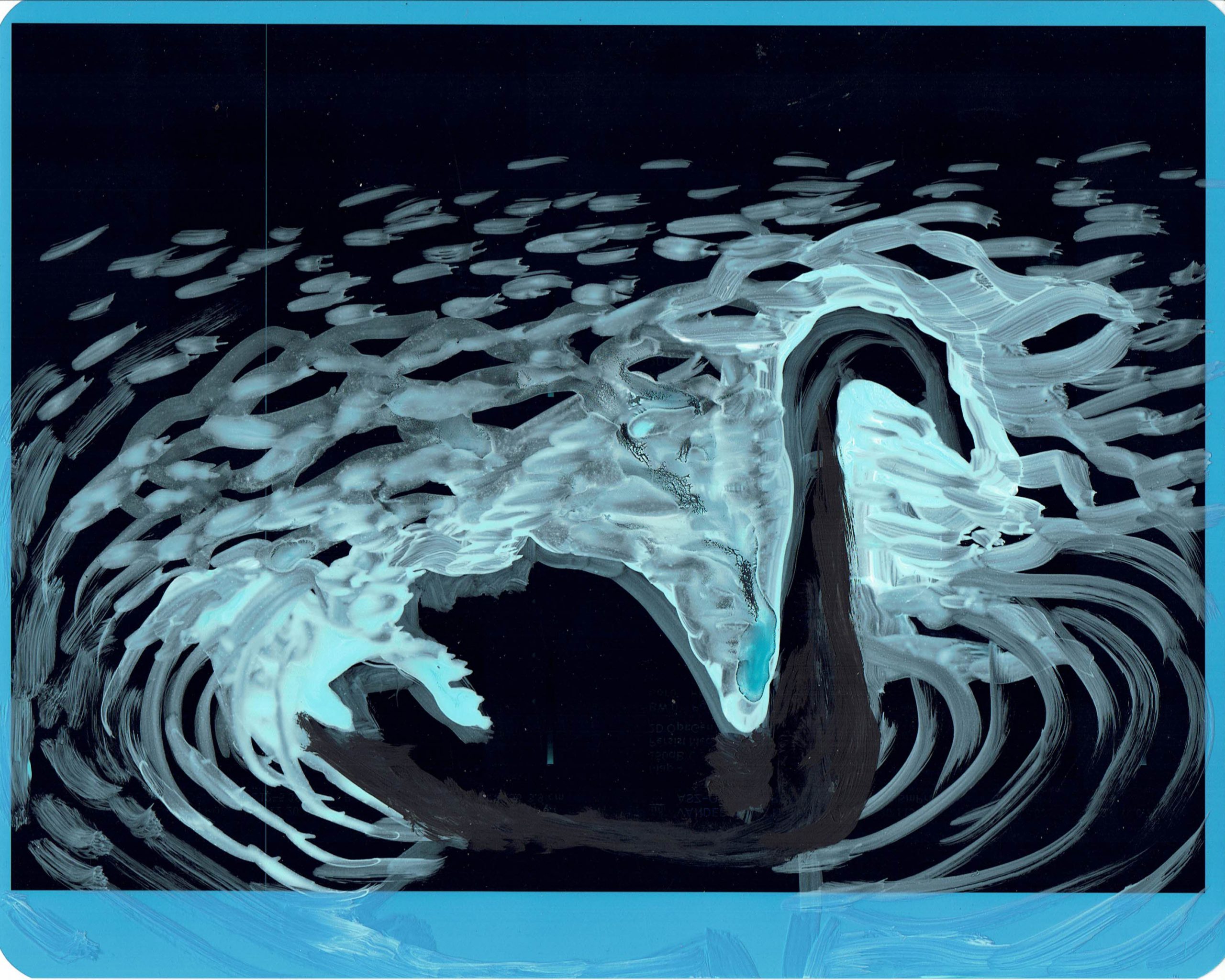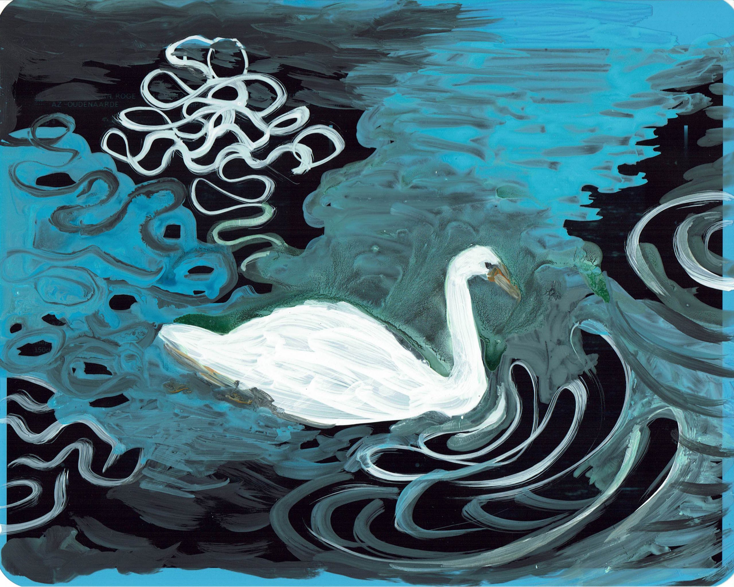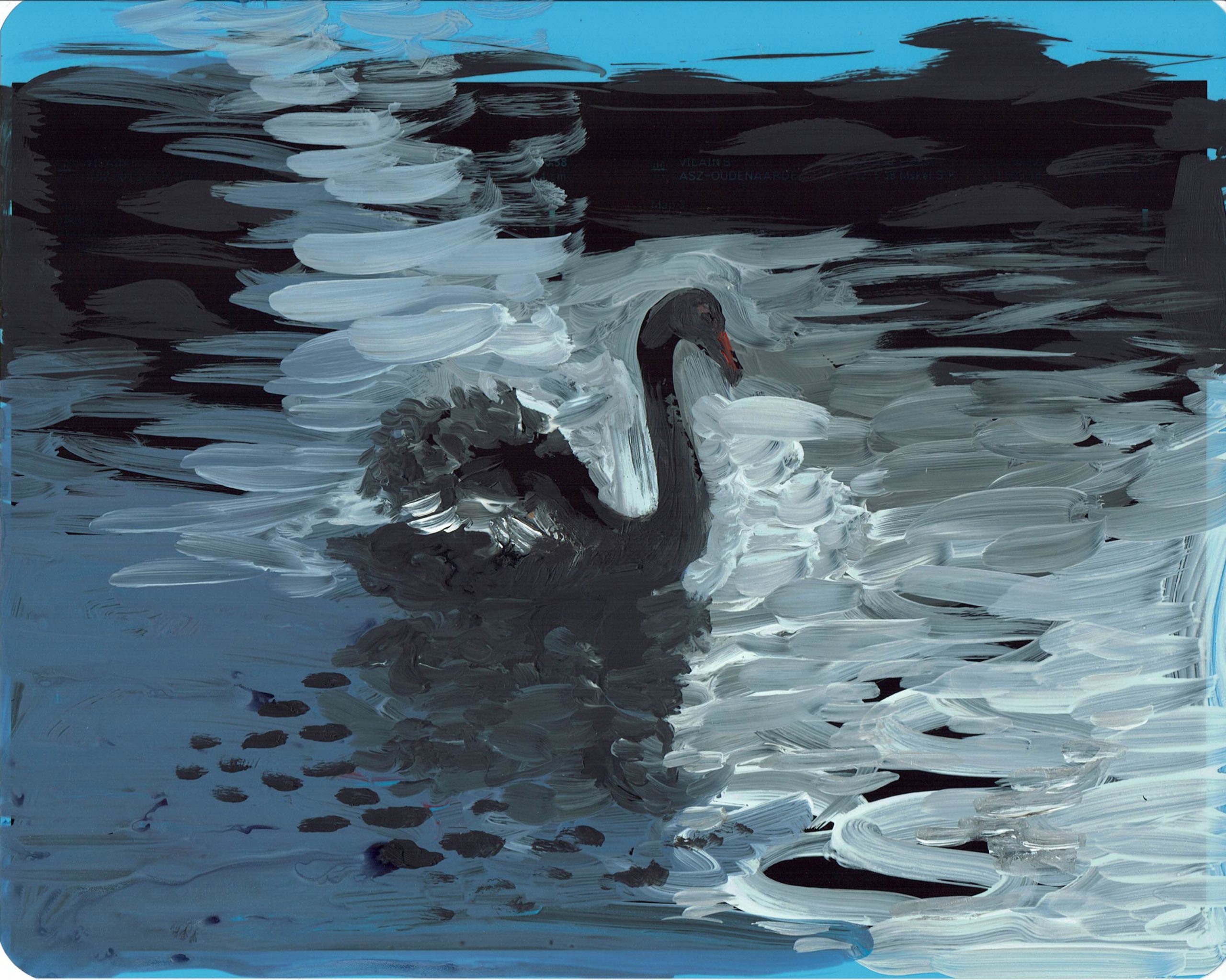 swan study 2 2024 acryl on Xray 20 x 25 cm