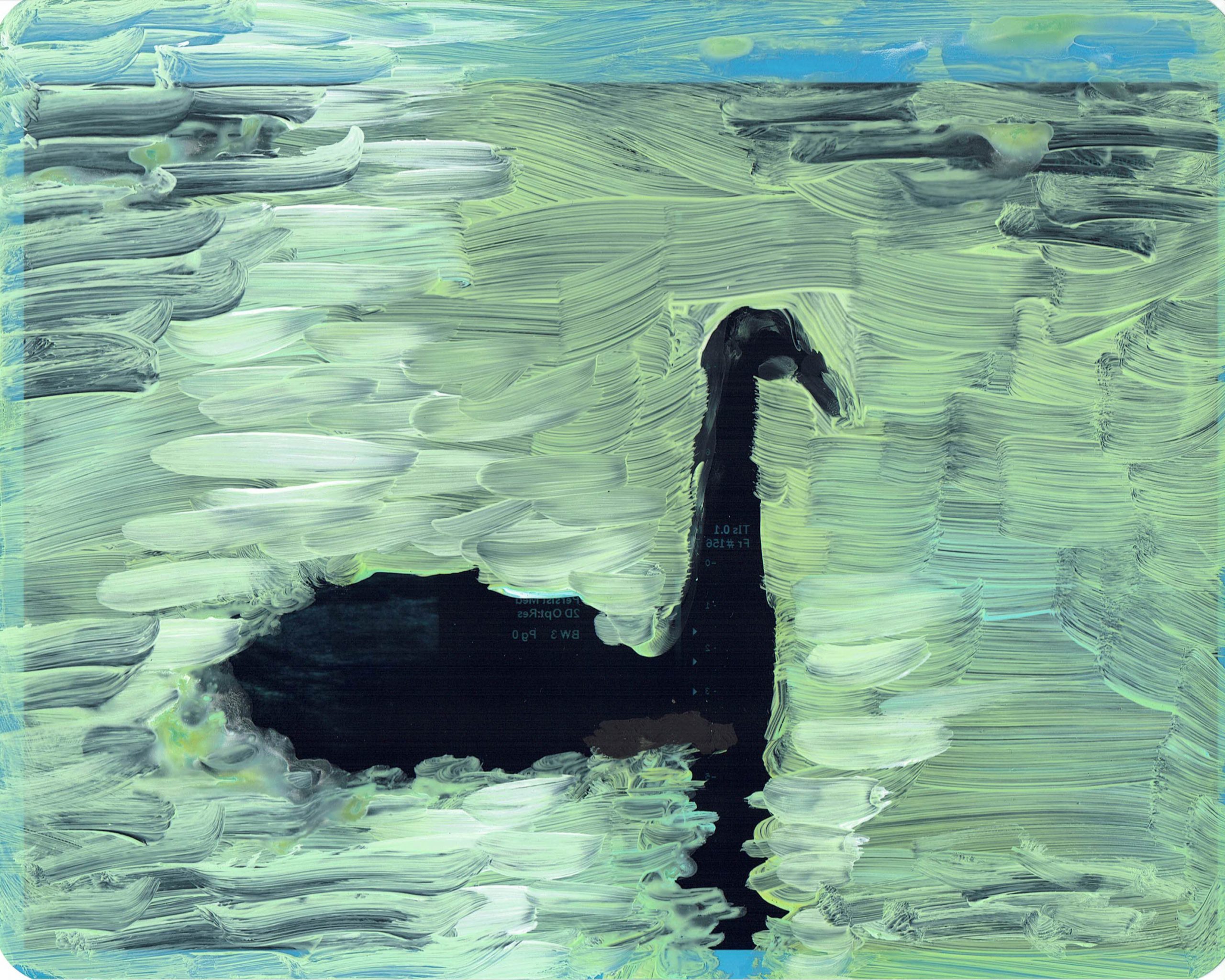 swan study 7 2024 acryl on Xray 20 x 25 cm