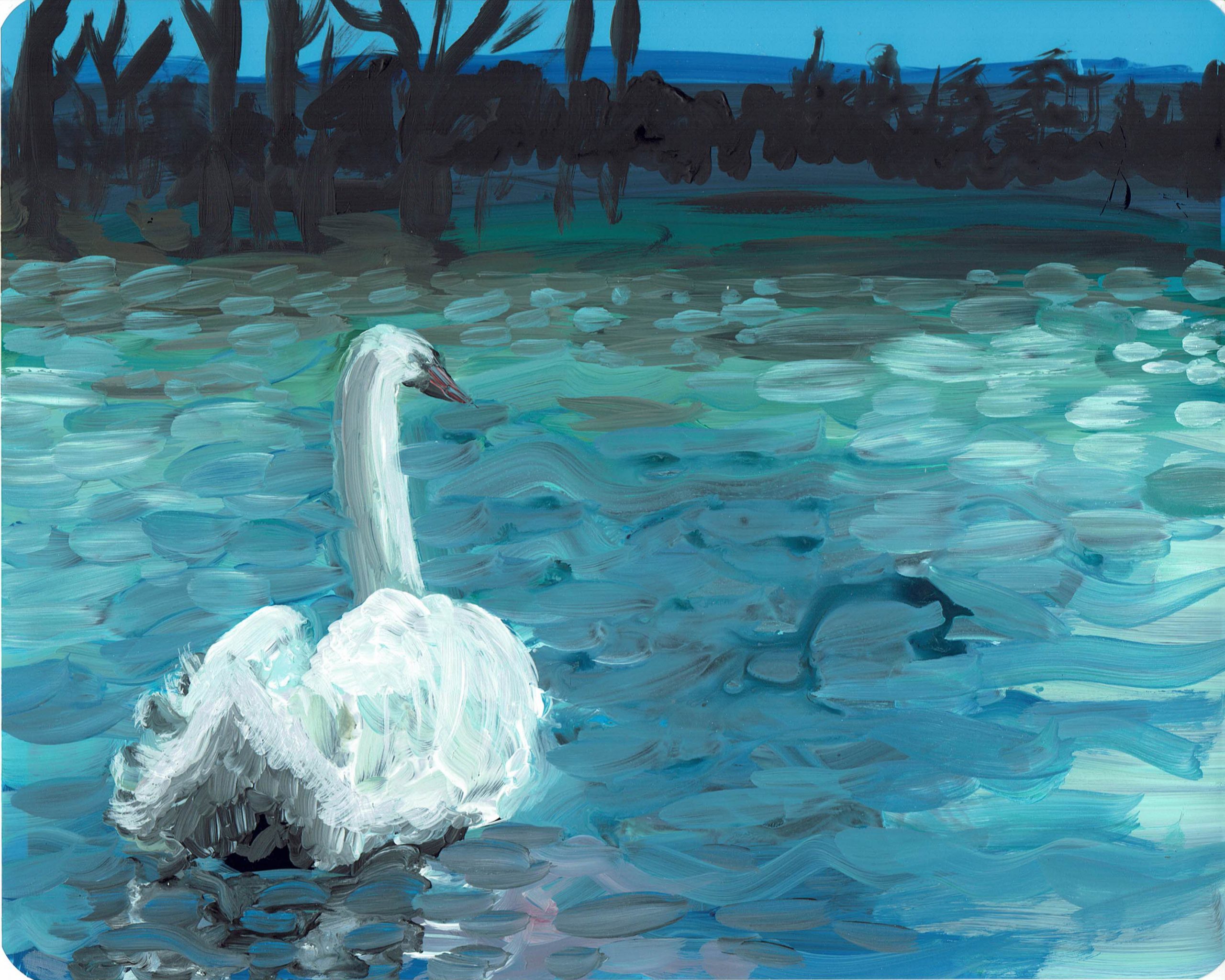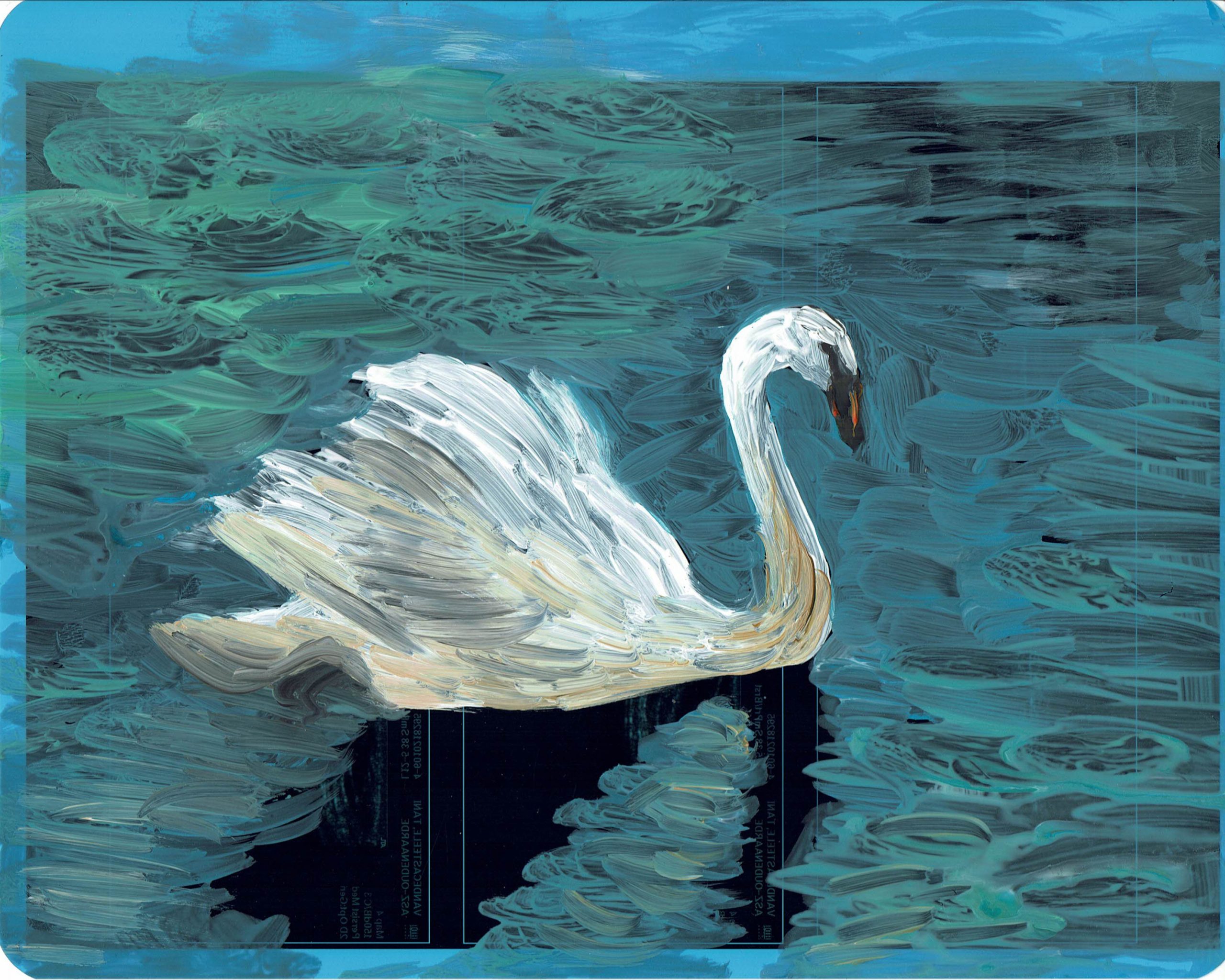 swan study 4 2024 acryl on Xray 20 x 25 cm