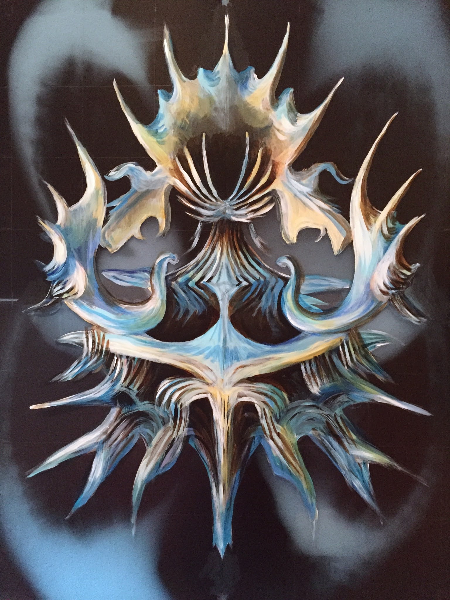 Wesen Wunder Welten_fraktal 3 2022 acryl on Xray 70 x 47 cm